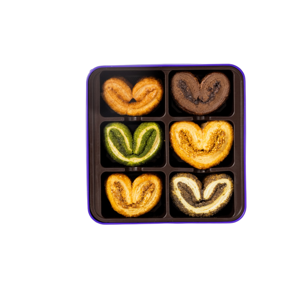 The Legend Assorted Palmier takes palmier to the next level, combining bold and sophisticated flavors such as Matcha, Hazelnut, and Chocolate. Each piece is crafted to deliver a unique taste experience, with layers of buttery crispness and rich fillings. This is a box for true connoisseurs, where every palmier is a work of art, designed to be savored slowly and appreciated fully.